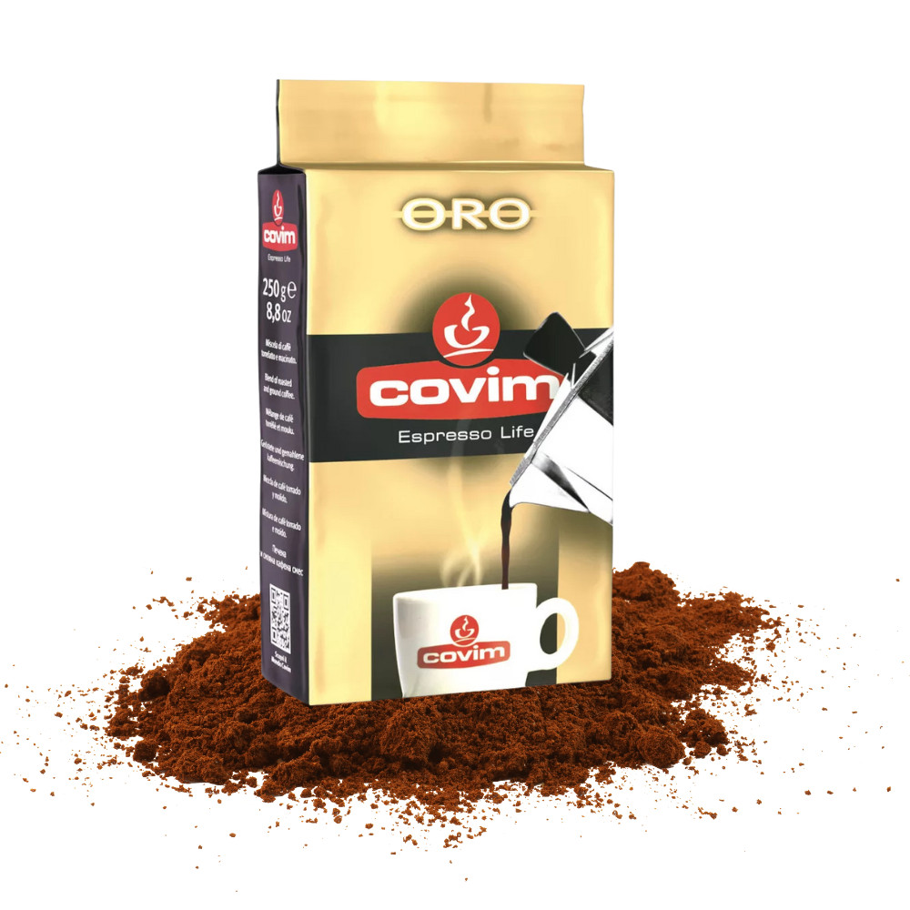 Covim Gold 250 g cafea măcinată – amestec italian echilibrat și rafinat. Boabe atent selecționate de arabica și robusta oferă o cafea catifelată și aromată. Ideală pentru moka sau espresso.